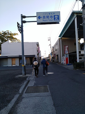 遍路第四天(12/2日),昨天從鳴門大橋返回德島住宿的微笑飯店,我們即刻再搭JR高德線前往第二階段ˍ香川縣高松市住宿,預計今天前往88番和87番所禮拜。第一班車起站就看到兩位遍路行者,師兄先寒暄問候並向座位較近的年輕菩薩詢問這兩所寺院有關的遍路問題。他建議我們先走八十七番的長尾寺,然後再前往結願所。七點前從高松築港車站搭長尾線於長尾寺站下車,徒步不到五分鐘就看到寺院印入眼簾。進入寺院後;一心恭謹依序在本堂和大師堂完成禮佛、納札、誦念心經、回向、納經等參拜儀式後,我們再度向這位年輕菩薩道謝,便自行前往讚岐市內公車前往大漥寺。